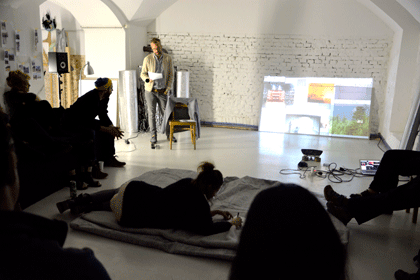 ein vortrag über ein projekt das 2 oder 5 jahre zurückliegt. ok. eine projektpräsentation eines abgeschlossenen projektes. ja, das kennen wir! aber wo ist es möglich über methoden der eigenen künstlerischen praxis zu sprechen, von arbeiten, die noch im entstehen sind?