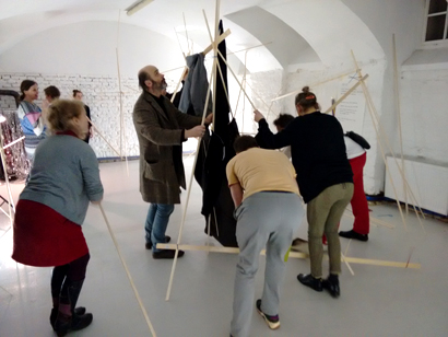 vladimir miller untersucht die normativen beziehungen zwischen kollektiven und architektonischen räumen, sowie kollektive bauprozesse. er forscht nach der relation zwischen (temporären) gemeinschaften und (temporärer) architektur. angesichts der engen beziehung zwischen dem politischen und dem architektonischen, sucht miller nach einem spielerischen, gemeinschaftlichen ansatz, um etwas von der kraft bei der gestaltung des sozialen wieder zu erlangen, die wir so leicht den architekten und stadtplanern überlassen haben.