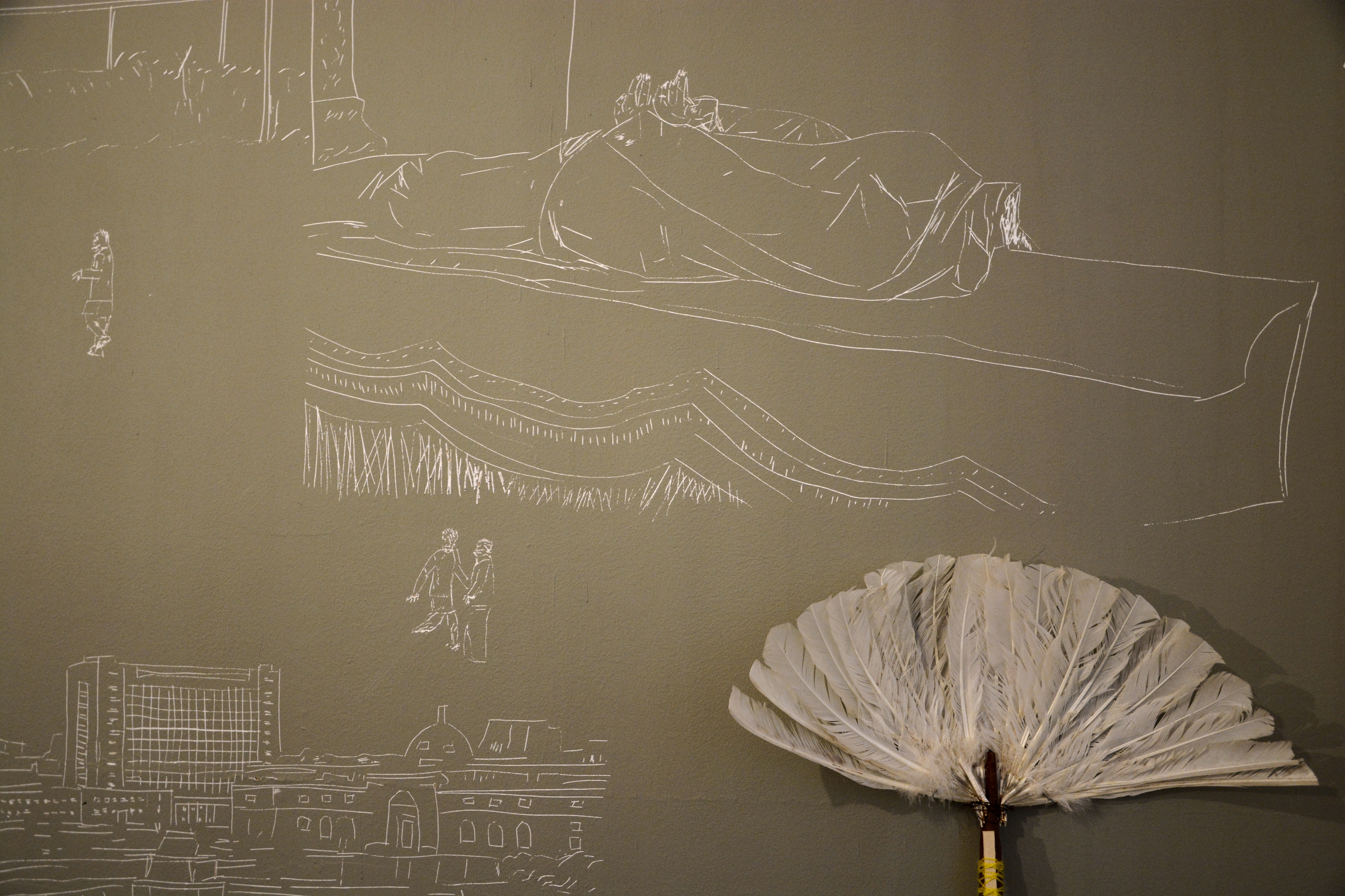 "thoughts meet space" is an installation that makes he who enters an active participant, not because he engages in it, but because he creates it. many of the elements and objects placed in the installation are incomplete. it is up to the audience to complete them. his imagination, his thoughts meet the space at hotel viennoise. this encounter of thought and space, because of its peculiar nature, the juxtaposition of the material and the immaterial, render the space ever expansive and ever richer. again, this goes back to the idea of the audience member who is not a consumer, but rather a creator.